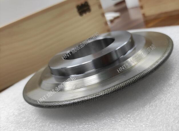 燒結(jié)HNT金剛石滾輪修整器:按圖紙要求加工一模具,之后采用人工植入方式,將大顆粒金剛石按一定的密度有序的鑲在模具內(nèi),之后采用燒結(jié)爐及粉末冶金技術(shù)燒結(jié),之后去掉模具,以金剛石型面為基準(zhǔn),加工孔和端面基準(zhǔn),之后再磨床上修整砂輪,計(jì)算出合適的修整余量,在專業(yè)的磨床上經(jīng)過多次反復(fù)的修磨和檢測,直至符合成品圖紙要求。
