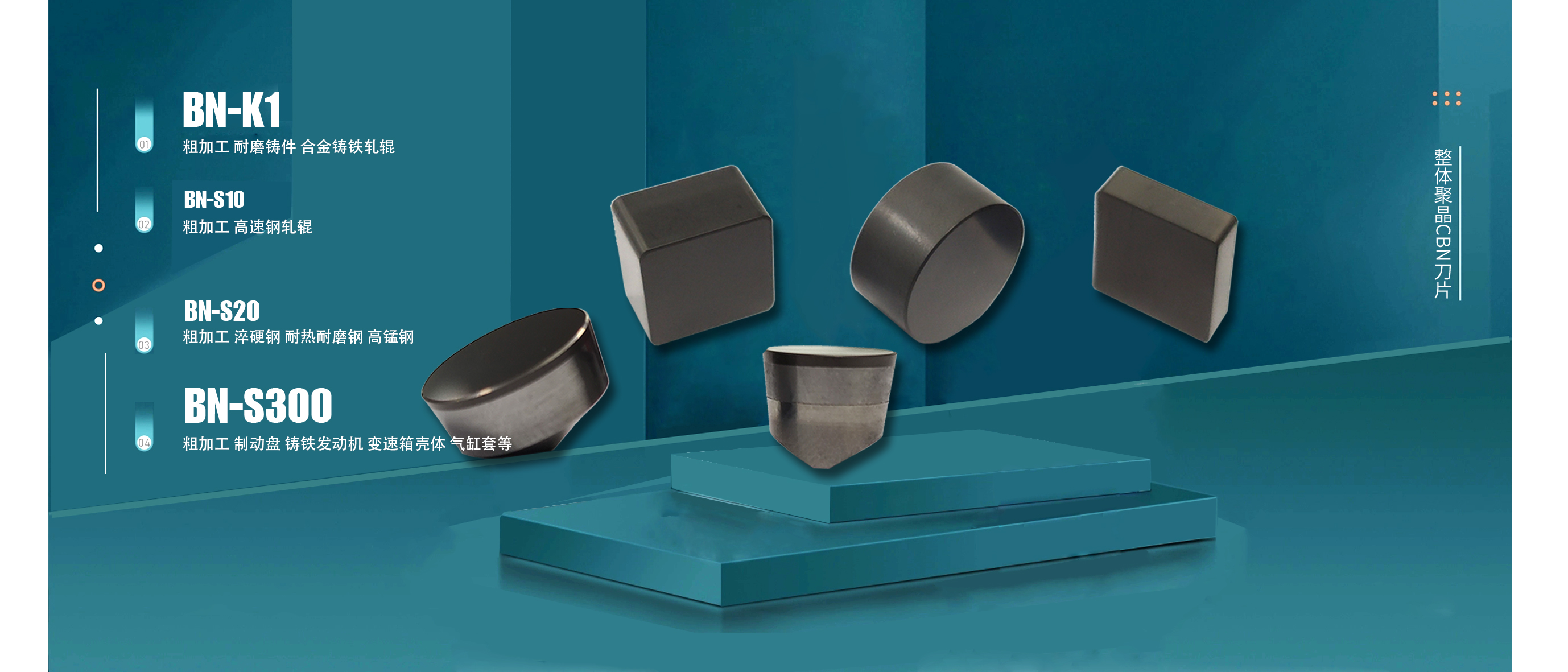 華菱的CBN(立方氮化硼)刀具不僅提供了常規的整體式、鑲嵌式和復合式CBN刀片結構,還通過創新研發,根據特殊的加工工況,推出了多種刀片類型,以滿足客戶不同的加工需求: