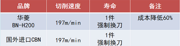總結:同等切削參數情況下,華菱PCBN刀片比國外進口刀片成本降低60%。